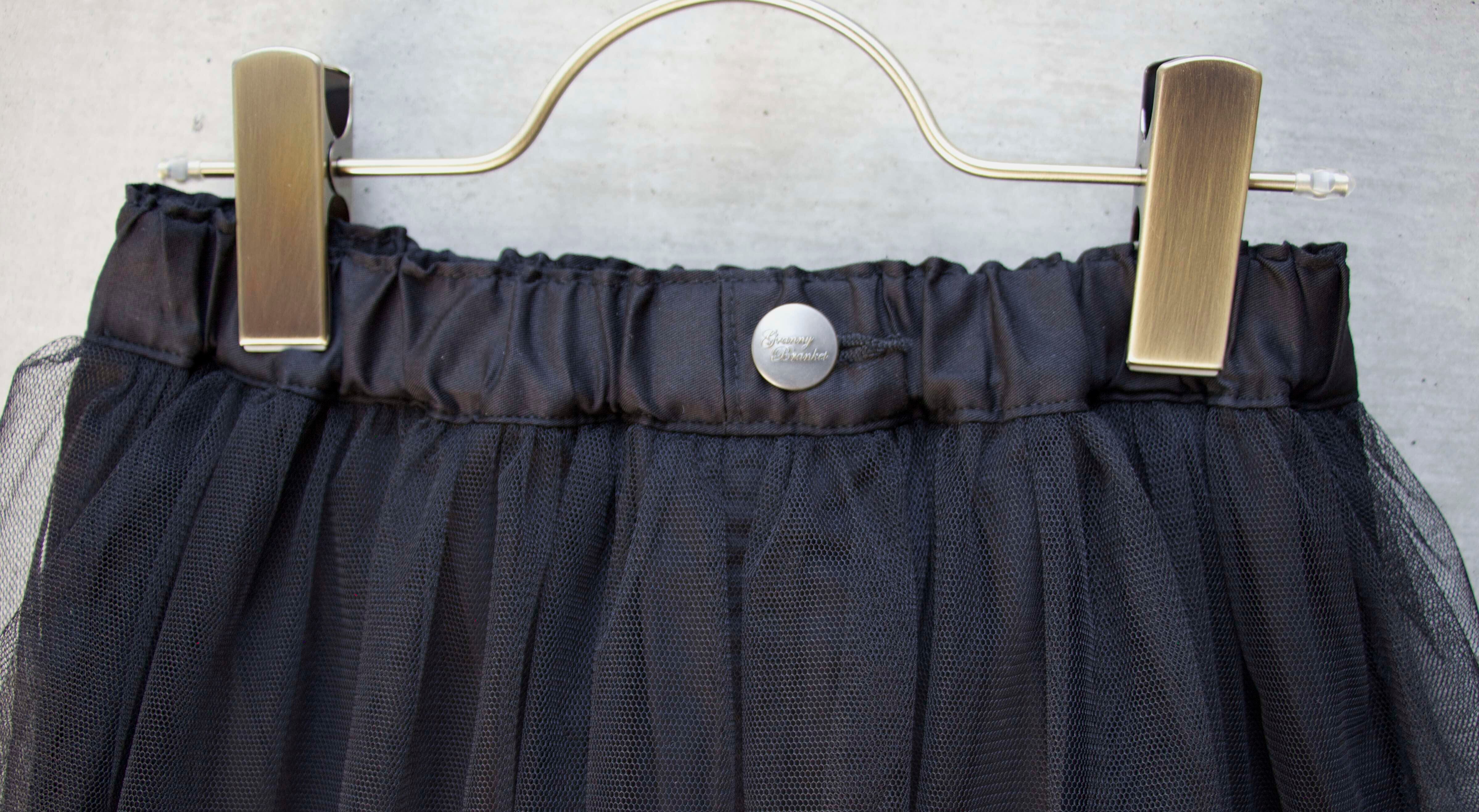 ガーリーにもカジュアルにも使える甘過ぎないデザインのチュールつきチノスカートは、コーディネートの主役アイテム。