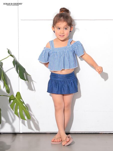 ストライプ柄が爽やかな、着替えやすいセパレートタイプの水着です。